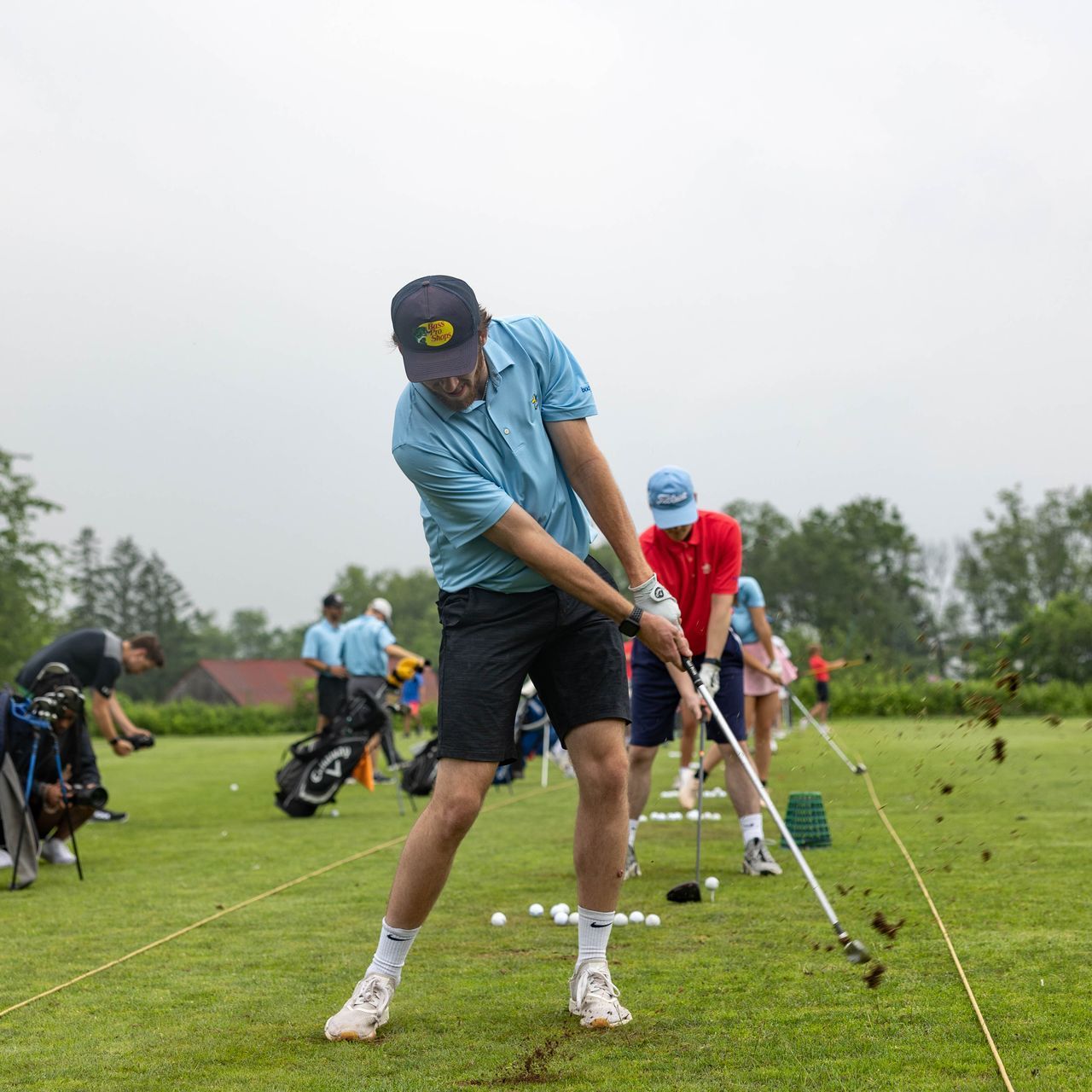 Golf - clubs, balls, tees, golf towel, hat, collared golf shirt, Pants or shorts/skirt, sneakers or golf shoes (no spikes, only soft-spikes)